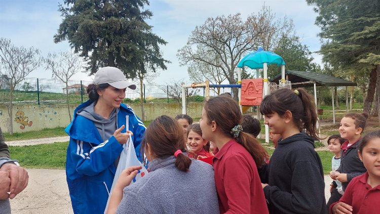Öykü Gürman, öğrencilere şeker ve çikolata ikram ederek jest yaptı.