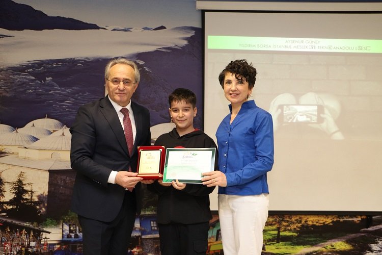 Edebi ve görsel kategorisinde yarışmaya katılarak ilkokul, ortaokul ve ortaöğretim düzeyinde il birinciliği elde eden öğrenciler, para ödülü ve başarı belgesiyle ödüllendirildi.