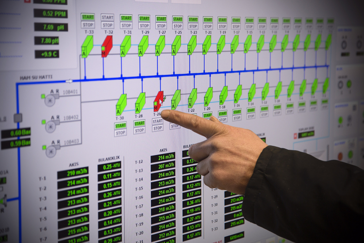 Gece saatlerinde yapılan dinlemeler sayesinde yüzeye çıkmayan arızalar kısa sürede belirleniyor, kayıp ve kaçakların önüne geçiliyor. SCADA sistemiylesuyun üretimden dağıtıma kadar olan tüm aşamaları 7/24 takip ediliyor.