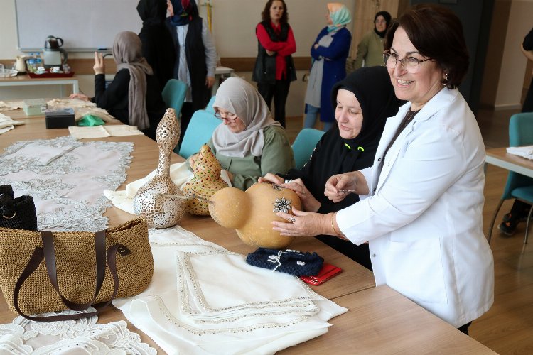 Tüm kurslarda aktif eğitimler devam ederken tezgâhın başına geçen sanatkâr adayları çeyiz, takı tasarımı, el nakışı, iğne oyası, kırkyama, makrome, kâğıttan aksesuar tasarımları, keten telkâri konusunda yaptıkları eserlerle görenleri hayran bırakıyor.