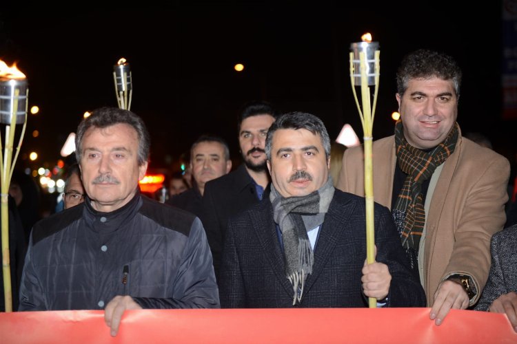 Bağlaraltı Şehitler Parkı’ndaki Sarıkamış Şehitleri Anıtı’nda saygı duruşu ve Kuran tilaveti ile başlayan program, katılımcıların ellerinde meşalelerle Barış Manço Kültür Merkezi’ne saygı yürüyüşü yapmasıyla devam etti.