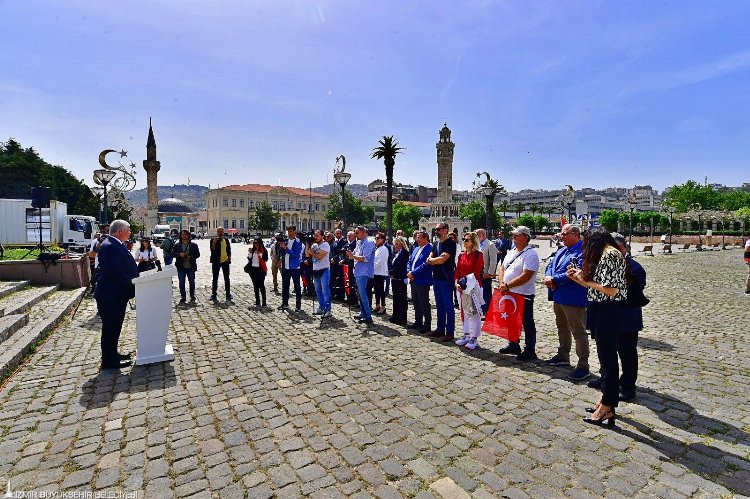 Bugün emperyalizme karşı tarihin en büyük direnişinin başladığı yerde bulunduklarına dikkat çeken İzmir Büyükşehir Belediyesi Başkan Vekili Mustafa Özuslu, “Tarih 1919. Mayıs’ın 15’iydi. İzmir’de bir kahraman Anadolu kurtuluş destanının ilk cümlesini söyledi: ‘Sen başlat, bitiren bulunur.’ Bu sözler kadını, yaşlısı, çocuğu, genciyle koca bir vatan için istiklal mücadelesinin kıvılcımını yaktı. Halkın beklediği o ilk ateşi yakan kahramanın adı Hasan Tahsin’di. Tam burada… İşgal ordularına ilk kurşun atıldı. O kurşun ümitsizliğe gömülmüş bir memleketin cesareti ve umudu oldu” diye konuştu.