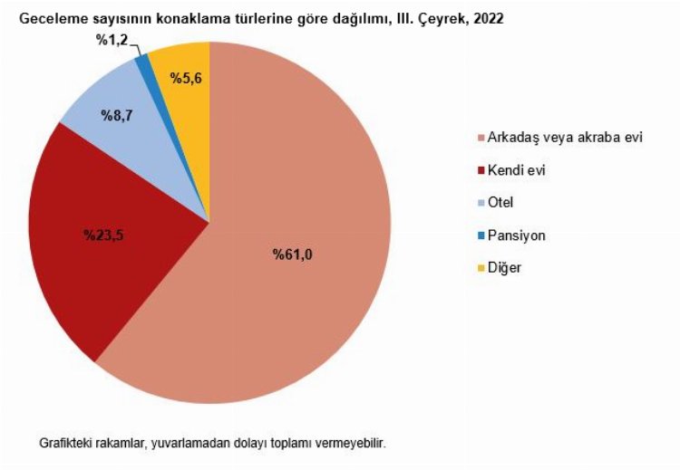 Türkiye'de 19 milyon 156 bin kişinin yurt içinde seyahata çıktığı üçüncü çeyrek turizm verilerine göre, 64 milyar lira yakın harcama yapan vatandaşlar, seyahatlerinde konaklama olarak en çok arkadaş ve akraba evini tercih etti.