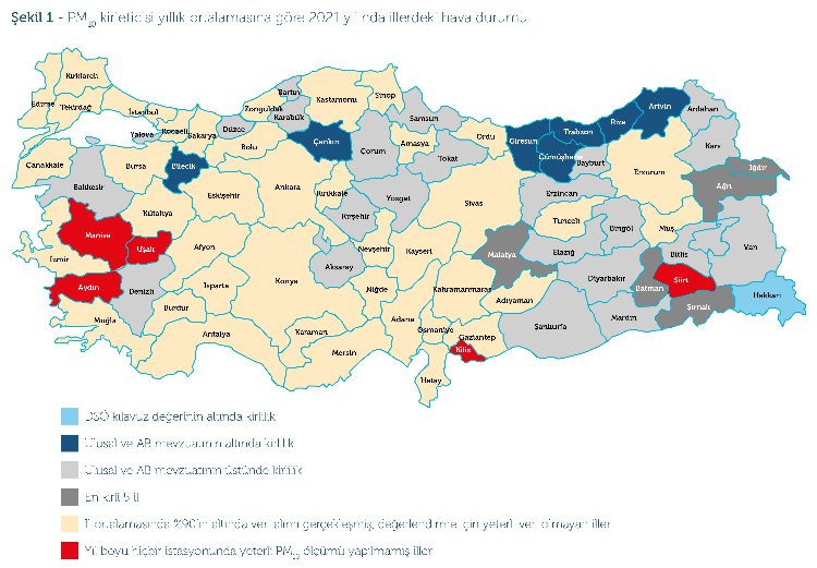 Temiz Hava Hakkı Platformu Koordinatörü Deniz Gümüşel, raporla ilgili yaptığı değerlendirmesinde, Türkiye’de 360 istasyonlu oldukça geniş bir izleme ağı bulunmasına rağmen bu istasyonlarda düzenli ölçüm yapılmadığını, 2021 yılında Türkiye’de en yaygın olarak izlenen hava kirletici parametre PM10 için bile, sadece 34 ilin kirlilik durumunu bildiklerini, bu kısıtlı veriye göre, Türkiye’de DSÖ'nün sınır değer olarak belirlediği PM 2.5 yoğunluğunun tam dört katı kirli hava soluduğumuzu söyledi.