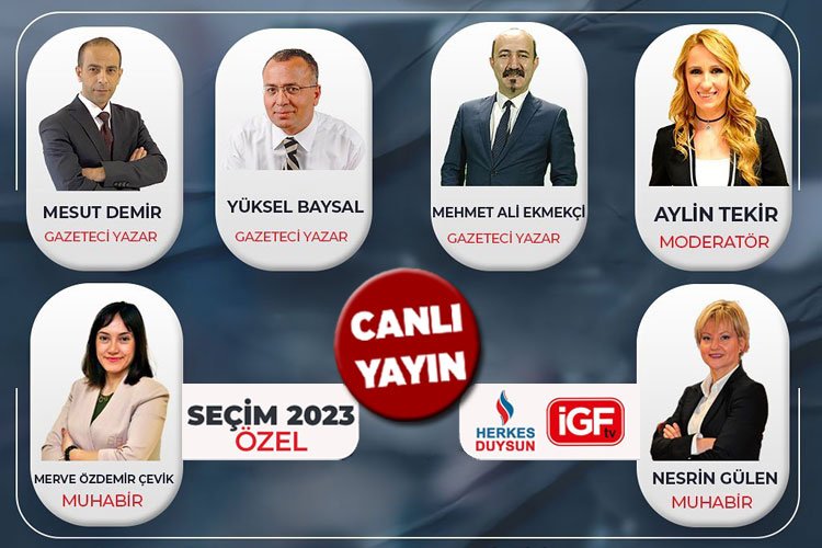 İGF TV, Herkes Duysun TV ve İGFA üyesi tüm medyalar aracılığıyla yapılacak Seçim 2023 Özel Yayını'nda; Yüksek Seçim Kurulu aracılığıyla paylaşılacak veriler, sandıkların açılıp yayın yasağının kalkmasıyla anlık olarak iletilmeye başlanacak.