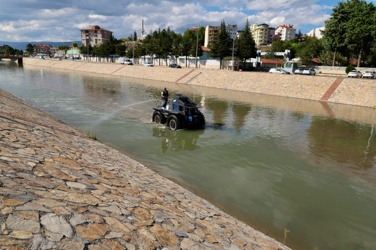 Yeşilırmak'ın içinde yapılan ilaçlama çalışmasında adeta bir film sahnesini andıran görüntüler verdi. Karada, suda, bataklık alanlarda rahatlıkla kullanabilecek araçla sivrisinek, sinek ve haşerelere karşı ilaçlama yapılacağını belirten Başkan Yazıcıoğlu, Tokat'ta bir ilk olduğunu söylerken deneme sürüşünü gerçekleştirdi ve Tokat'a hayırlı olmasını diledi.