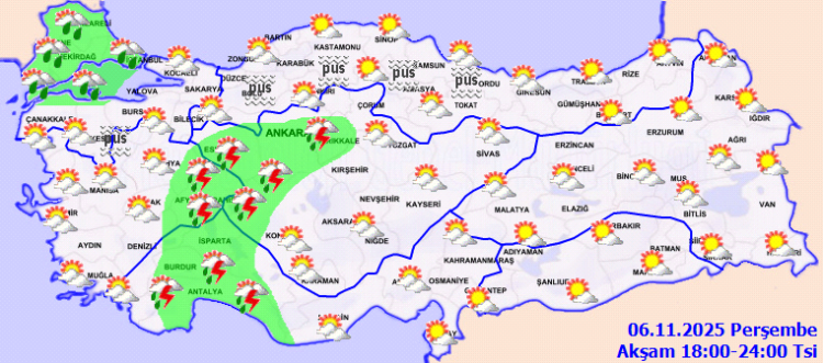 06.11.2025 - Perşembe 08:31Marmara’nın batısı, İç Ege, Batı Akdeniz ve İç Anadolu’nun batısında sağanak yağış beklenirken, sıcaklıklar mevsim normallerinin üzerinde seyredecek.