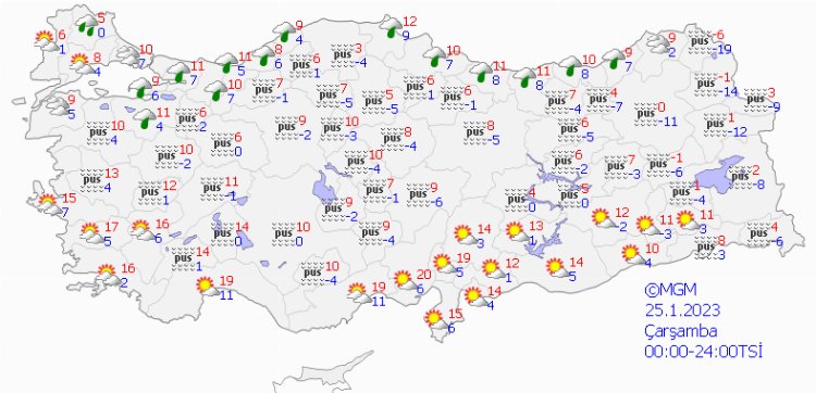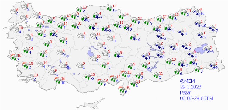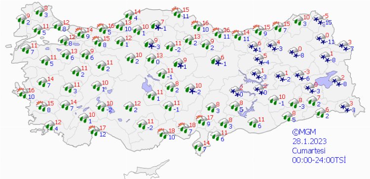 Önemli bir değişiklik olmayacağı yurtta bugün havanın mevsim normallerinin üzerinde seyretmeye devam etmesi tahmin ediliyor. Rüzgarın ise genellikle kuzey ve kuzeydoğu yönlerden hafif, ara sıra orta kuvvette esmesi bekleniyor. Ancak Meteoroloji'nin 5 günlük hava tahmin raporuna göre önce yağmur ardından kar geliyor.