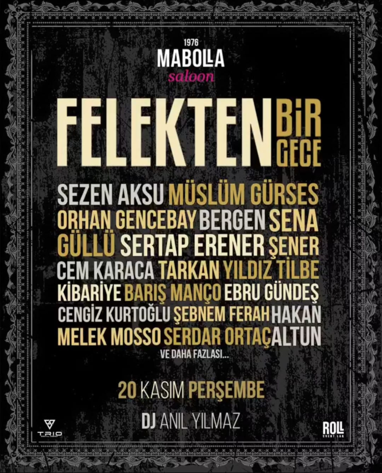 20 Kasım’da ise Felekten Bir Gece adlı özel etkinlik, gece hayatına dair eğlenceli bir alternatif sunacak.