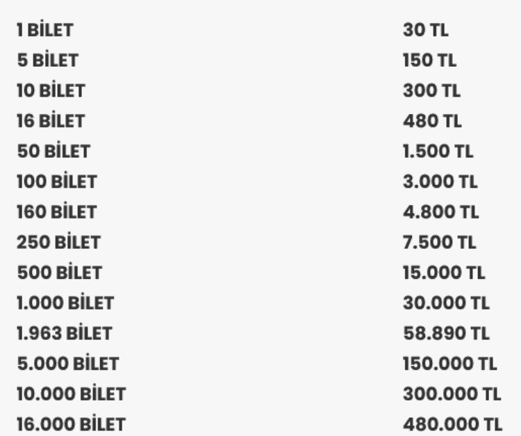 Toplam 14 kategori olarak satışa sunulacak Yadigar Hatıra Biletleri'nin fiyatlarını da interet sitesinde yayımlayarak satışa çıkaran kulüp, her bir bilet fiyat için 30 TL olarak belirledi.