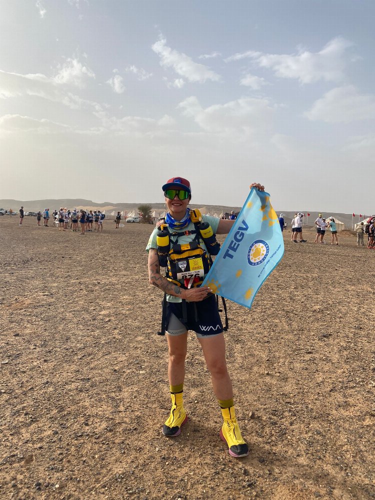 Eğitim gönüllüsü Seda Nur Çelik, 23 Nisan-1 Mayıs tarihleri arasında bu yıl 37’ncisi düzenlenen Marathon Des Sables’a katılarak TEGV’li çocuklar için Sahra Çölü’nde 7 günde 250 kilometre koştu.