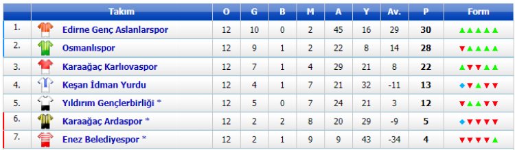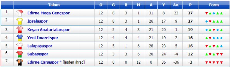 Bu puan durumu Edirne Mega Genç ile İpsalaspor Play-Off’a kalan takımlar oldu.