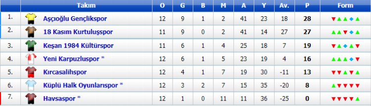 Erdoğan DEMİR / EDİRNE (İGFA) - Edirne Süper Amatör Lig ve 1.Amatör Lig’de mücadele eden Keşan takımlarının gruplarında oynanan ligin son haftasındaki maçların sonuçları ve puan durumları şöyle;