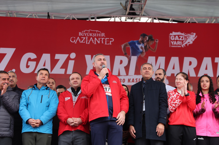 Gaziantep Vali Yardımcısı Hüseyin Kaptan ise sporcuları ve vatnadaşları selamlayarak, “Gazi şehrimizde yedincisini düzenlediğimiz, bu yıl 1498 sporcuyla gerçekleştirmiş olduğumuz yarım maratonumuza hepiniz hoş geldiniz. Geçen yıl bin yüz civarında bir sporcu vardı. Bu yıl bin beş yüze yakın bir sporcumuz var. Yirmi sekiz ülkeden yüz on sekiz yabancı sporcumuz da Gazi Yarı Maratonumuza katıldılar. Herkese, bütün sporcularımıza başarılar diliyorum. Halkımıza da iyi eğlenceler diliyorum” diye konuştu.