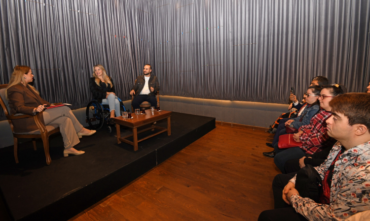 Sevda Kurul’un moderatörlüğünü üstlendiği söyleşide Kübra Denizci Keskin, ralli pistlerindeki mücadelesini ve engelli bir birey olarak sporda var olma serüvenini anlatırken; Ahmet Keskin de hem spor hayatında hem de aile yaşamında eşine verdiği desteğin önemini vurguladı.