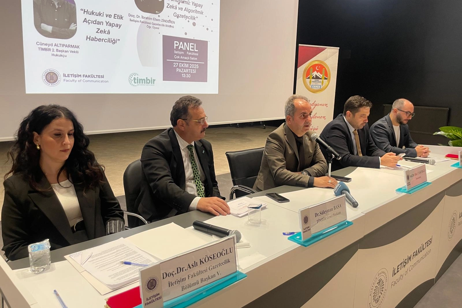 Panelin moderatörlüğünü Prof. Dr. Raci Taşçıoğlu üstlendi. Katılımcılar arasında TİMBİR Genel Başkanı Dr. Süleyman Basa, TİMBİR Genel Başkan Yardımcısı Cüneyt Altıparmak, Doç. Dr. Aslı Köseoğlu ve Doç. Dr. İbrahim Zinderen yer aldı. Panelde “Yeni Medyada Habercilik”, “Hukuki ve Etik Açıdan Yapay Zekâ Haberciliği”, “Yeni Medya Haberciliğinde Dezenformasyon” ve “Gazeteciliğin Dönüşümü: Yapay Zekâ ve Algoritmik Gazetecilik” başlıklarında sunumlar yapıldı.