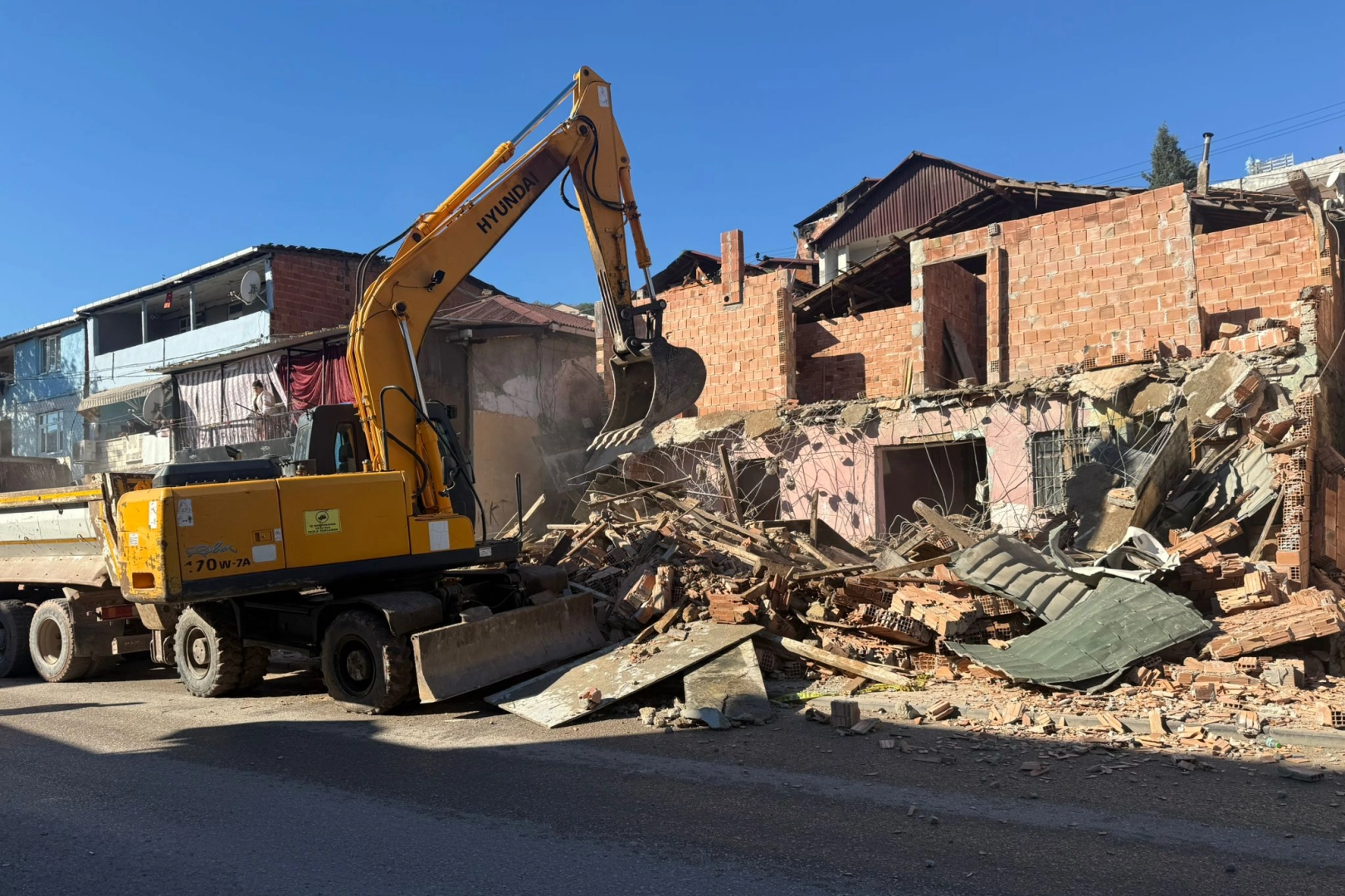 İzmit Belediyesi Yapı Kontrol Müdürlüğü ekiplerinin denetiminde yapılan 729 ada 2/P parseldeki yıkım işlemi, 775 sayılı Gecekondu Kanunu kapsamında uygulandı. Güvenli bir alanda yapılan yıkım çalışmasının ardından molozlar toplandı.
