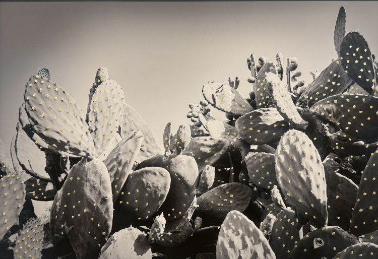 “Opuntia My Love” isimli eserlerimde Bodrum’da takıntılı olduğum opuntia kaktüsleri,onları da aynı mantıkla altın varak çalışarak, görünürlüğünü arttırmak istedim.