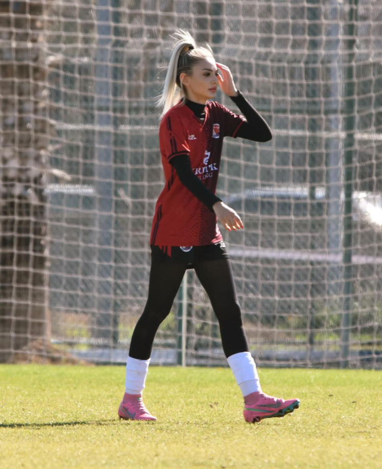 Sosyal medyada fırtına gibi esen, oyunculuğa kendinden söz ettiren fenomen Nevide Çiçek, yeşil sahaları da fethetti.