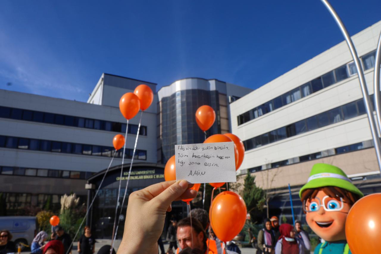 Kocaeli Büyükşehir Belediyesi iştiraki UlaşımPark A.Ş., LÖSEV Haftası kapsamında düzenlenen farkındalık etkinliği çerçevesinde Kocaeli Üniversitesi Hastanesi’nin lösemi servisinde tedavi gören çocukları ziyaret etti. Ziyarette UlaşımPark’ın maskotu “Ulaşcan”, sevimli hareketleri ile çocuklara moral aşıladı, dilekler balonlarla gökyüzünü renklendirdi.